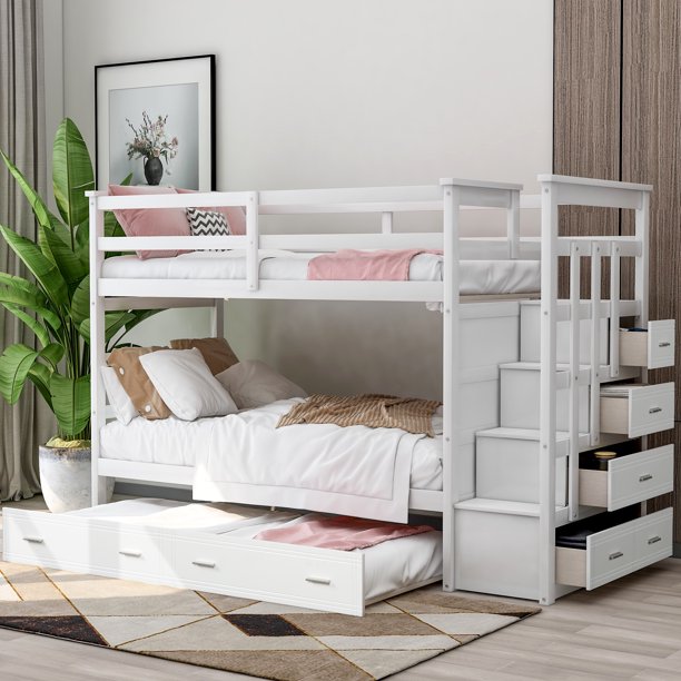 Buy bedz king stairway bunk beds twin over twin with 3 drawers in the steps and a twin trundle white at walmart.com.